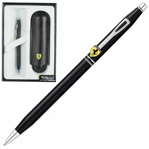 Ferrari Classic Century Matte Black Ballpoint Pen with Pouch features: