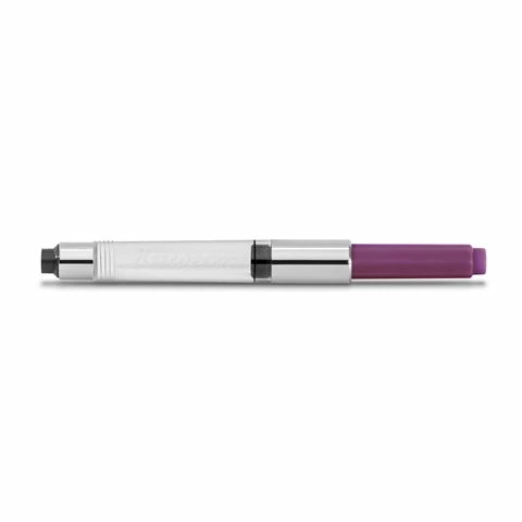 The Ruby Red Standard Converter with chrome accents, fits all long Kaweco fountain pens. Instead of two ink cartridges, the converter is inserted into the barrel of the fountain pen. This makes it easy to fill up ink from an ink bottle. Multiple filling in succession increases the filling quantity. Unlike conventional ink cartridges, which end up in the trash after the ink has been used, it can be permanently reused and refilled again and again.
