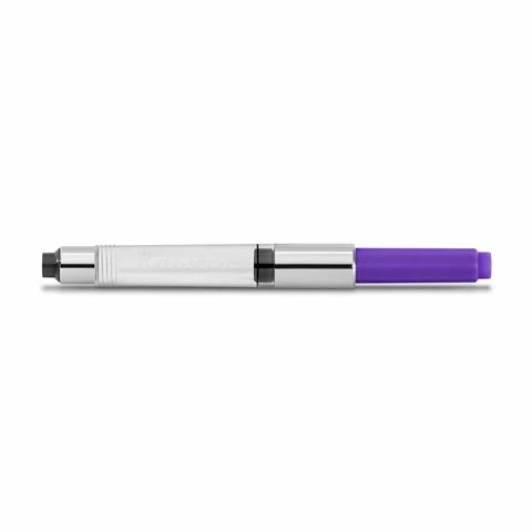 The Summer Purple Standard Converter with chrome accents, fits all long Kaweco fountain pens. Instead of two ink cartridges, the converter is inserted into the barrel of the fountain pen. This makes it easy to fill up ink from an ink bottle. Multiple filling in succession increases the filling quantity. Unlike conventional ink cartridges, which end up in the trash after the ink has been used, it can be permanently reused and refilled again and again.