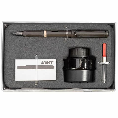 Comprising a superb LAMY Safari Fountain Pen Medium along with ink cartridge refills plus a LAMY Converter Z 24 and a bottle of ink! LAMY pens make writing a delight.