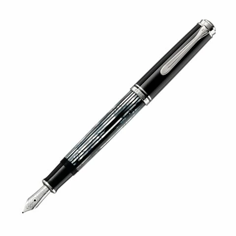 The Souverän M605 Fountain Pen is sleek in a black and white tortoiseshell design, with a 14-karat rhodium plated gold nib. The palladium plated rings and iconic Pelikan beak clip, gives the pen a contemporary touch. The F nib ensures a fine typeface and is particularly suitable for handwriting with smaller curves. Owning a Souverän means owning a world-famous classic.