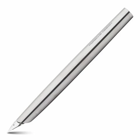 The Solid Fountain Pen from Porsche Designs is stunning to behold. It is milled out of a single piece of titanium, features a completely rhodinized 18 carot gold nib and comes in a two piece transport case made out of shiny polished alluminium.