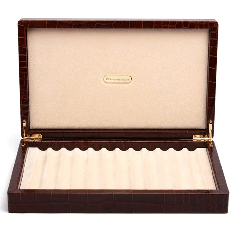 The most beautiful writing instruments deserve a home as elegant and sleek as they are. Your pens will be perfectly at home inside this stunning leather display case from Renzo. Inside, soft felt grooves await twelve of your most prized pens.