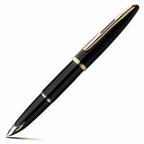 Fluid and radiant, you won’t be able to resist Waterman’s iconic Carene Black Fountain Pen. A bold, lacquered black body contrasts with shiny gold-plated accents to create a pen that’s certain to attract attention, every time you sign your name.