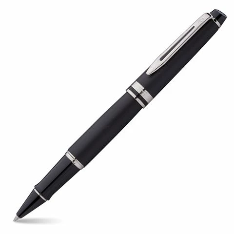 Expert Matte Black Rollerball Pen with Chrome Trim features:
